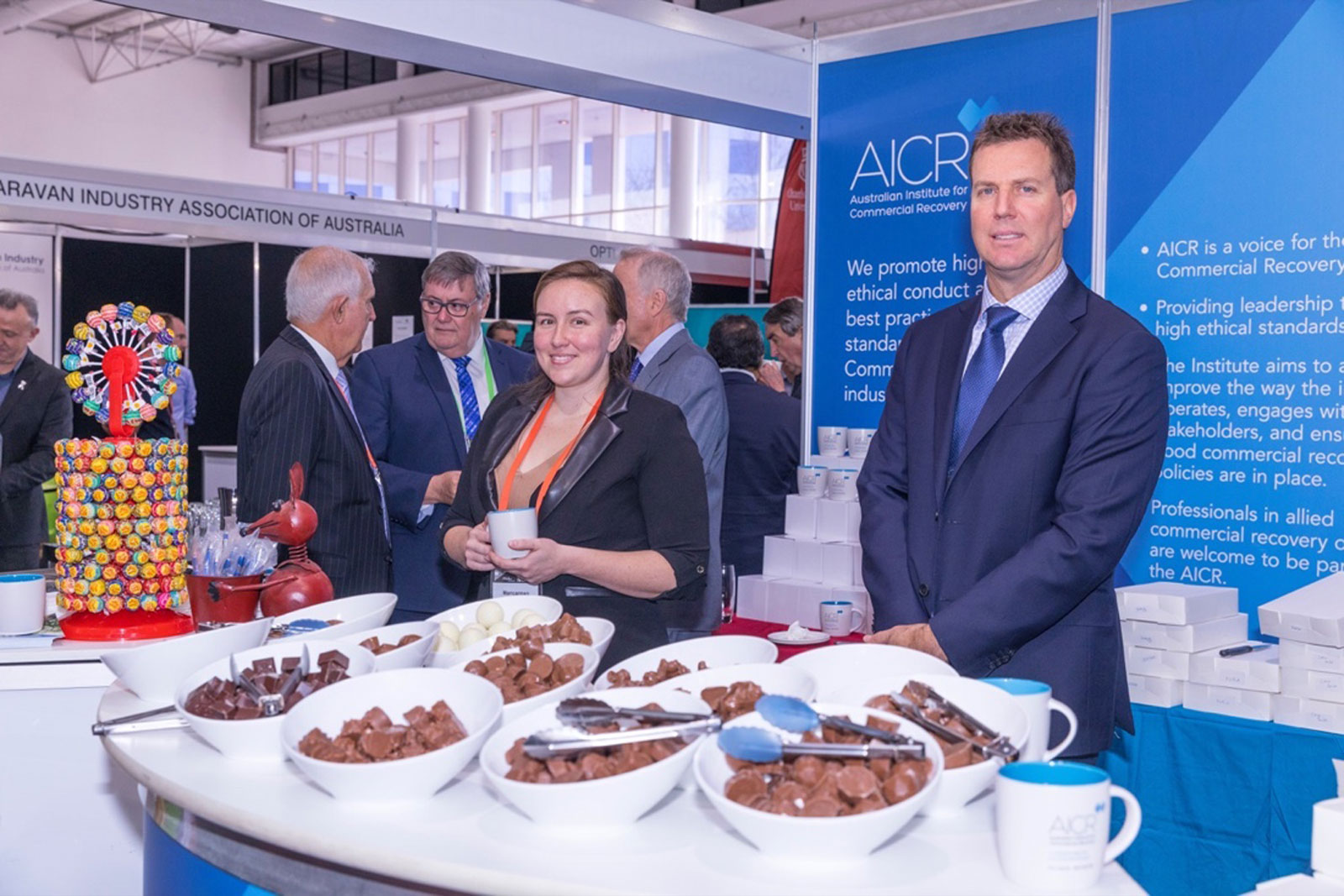 Pictured below: ALGA pictured from left to right: Chairman Brian Carter presents the business card drop bag to identify the lucky winner of the prize draw. The incredibly popular AICR stand, featuring our now infamous artisanal chocolates.Carl Scully, Maricarmen Wacher, Brian Carter, and Ashley Carter attend the Welcome Dinner.